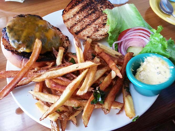 A fantastic place to hit on your way to (or on the way back) from Two Step. Serving locally raised grass-fed burgers. Try the Classic or South Point BBQ Burger with garlic basil fries...yummy!