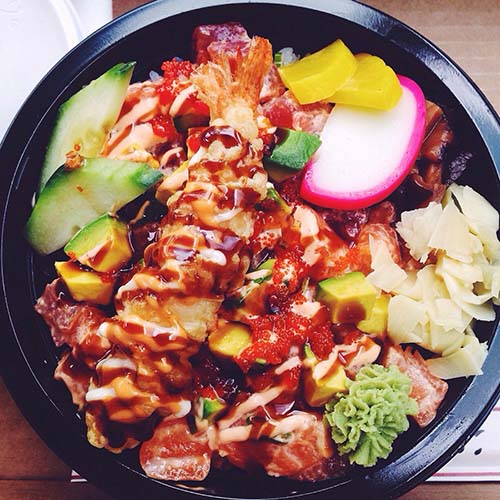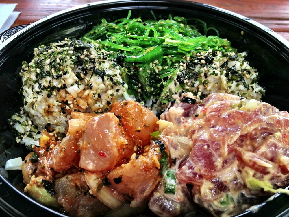 You know you won't find any fresher poke when you see the actual yellowfin tuna being brought in and carved up in person! Be sure to ask for the furikake (seaweed seasoning) on your poke bowls. There are several Umekes locations, including a full bar & fish market at the Kaiwa location.