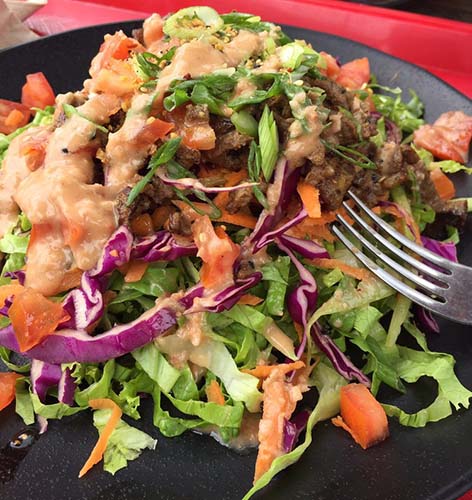 Founded by a Filipino chef who was trained on Oahu, Broke Da Mouth offers a local Filipino slant on the Hawaiian plate lunch. Broke Da Mouth is Hawaiian slang to say that the food is so delicious, it broke da mouth! Best known for their garlic furikake chicken, which definitely broke da mouth!